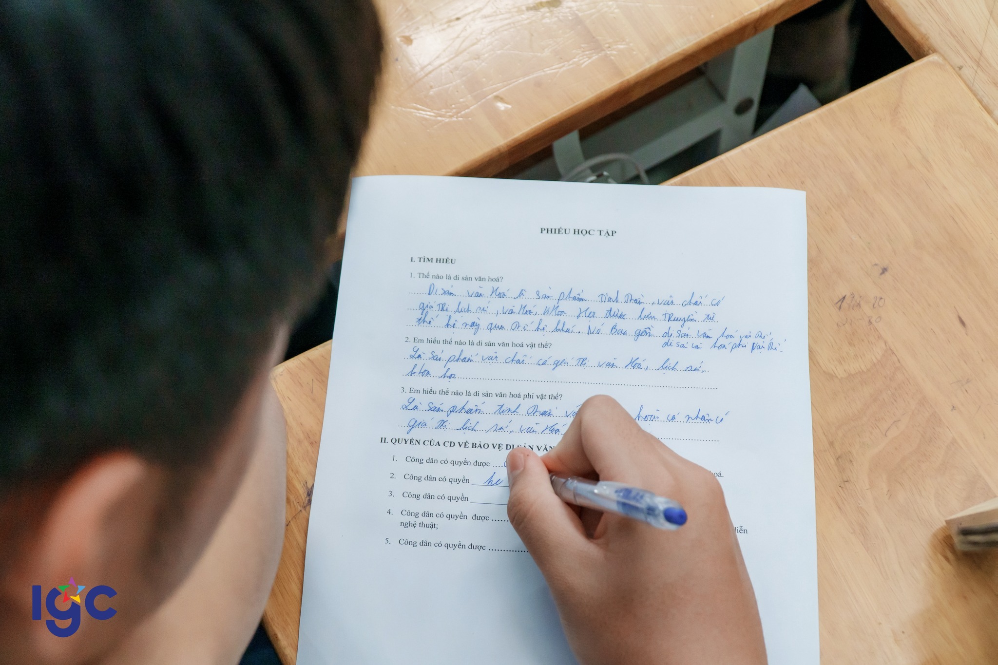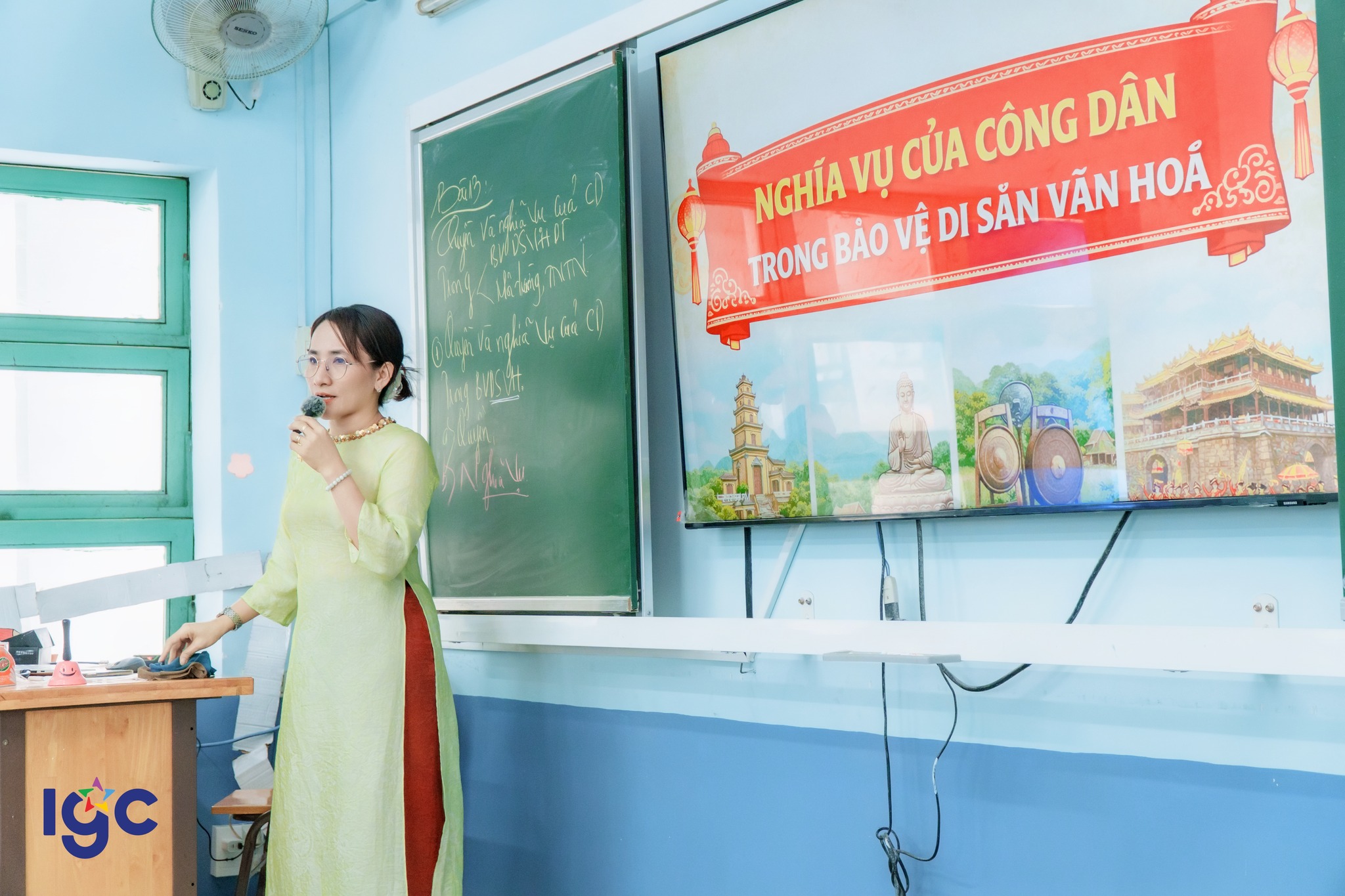Với chủ đề "Quyền và nghĩa vụ của công dân trong bảo vệ di sản văn hóa, môi trường", điểm nhấn đột phá của tiết học chính là việc học sinh chủ động ứng dụng Trí tuệ nhân tạo (AI) để hiện thực hóa kiến thức pháp luật. Sự kết hợp giữa tư duy trách nhiệm và công nghệ số đã tạo ra những sản phẩm học tập vượt mong đợi: