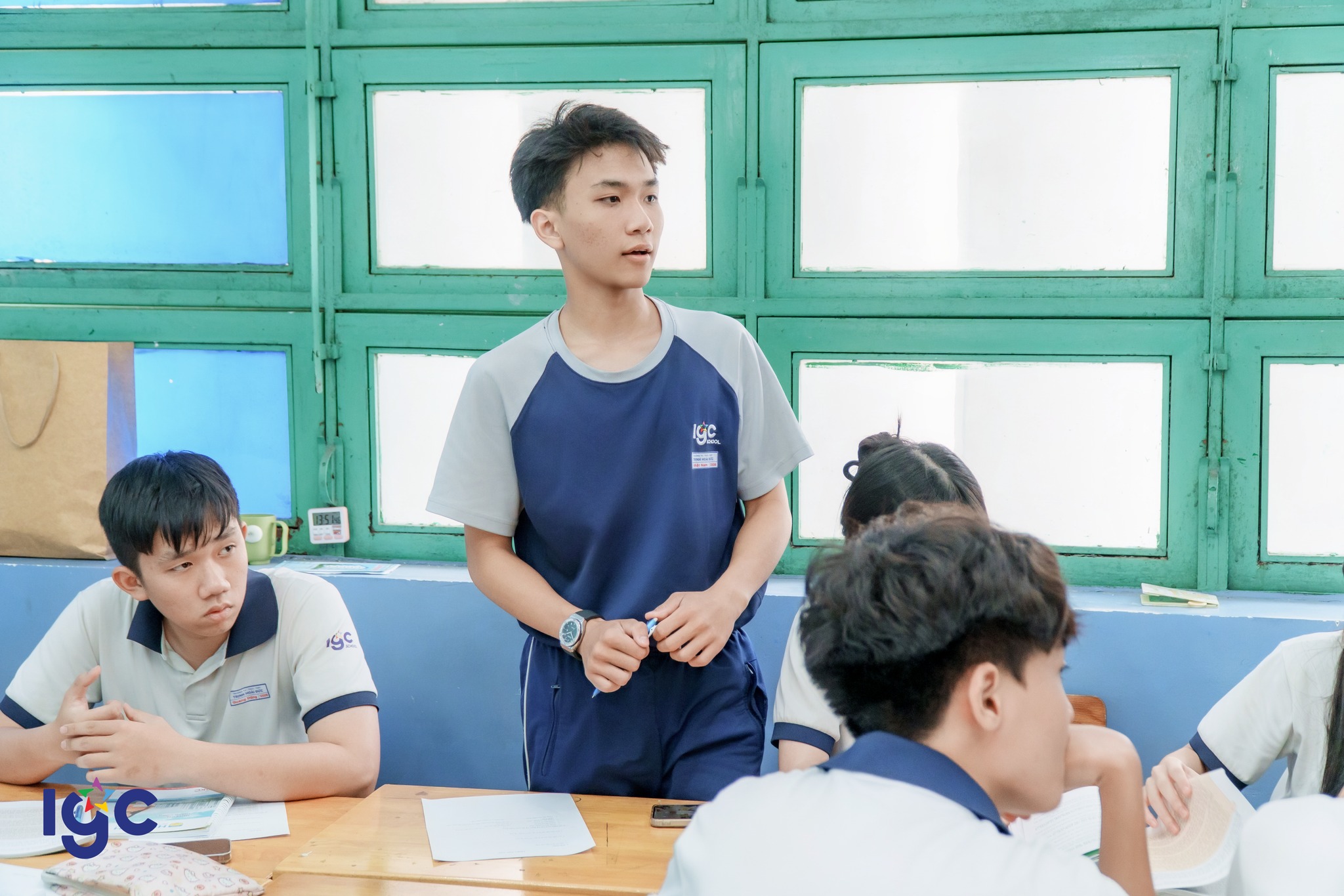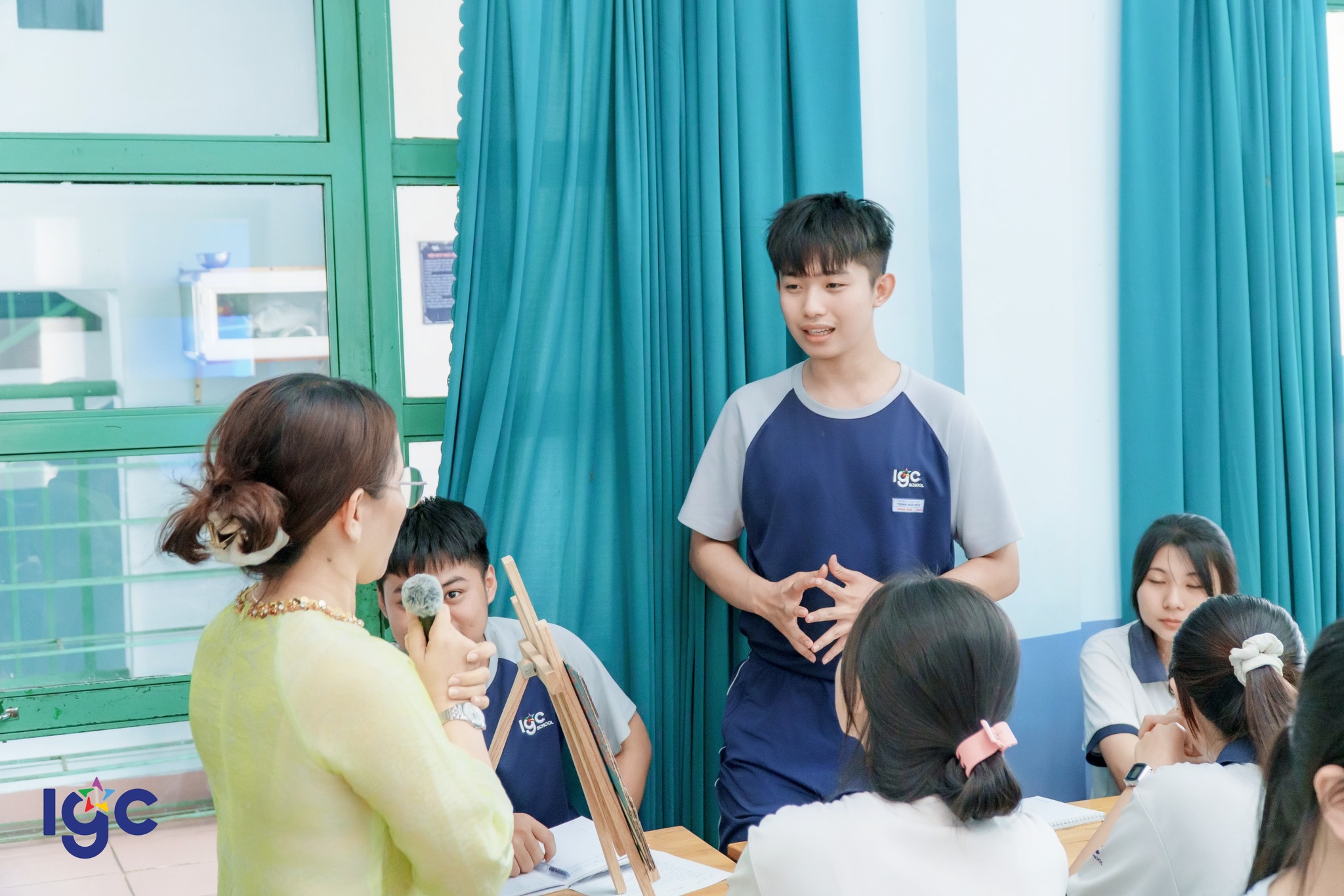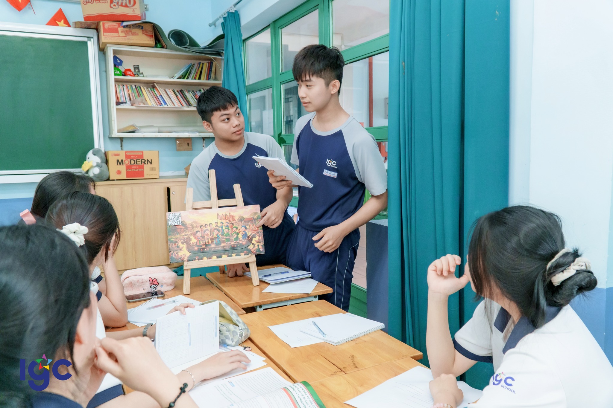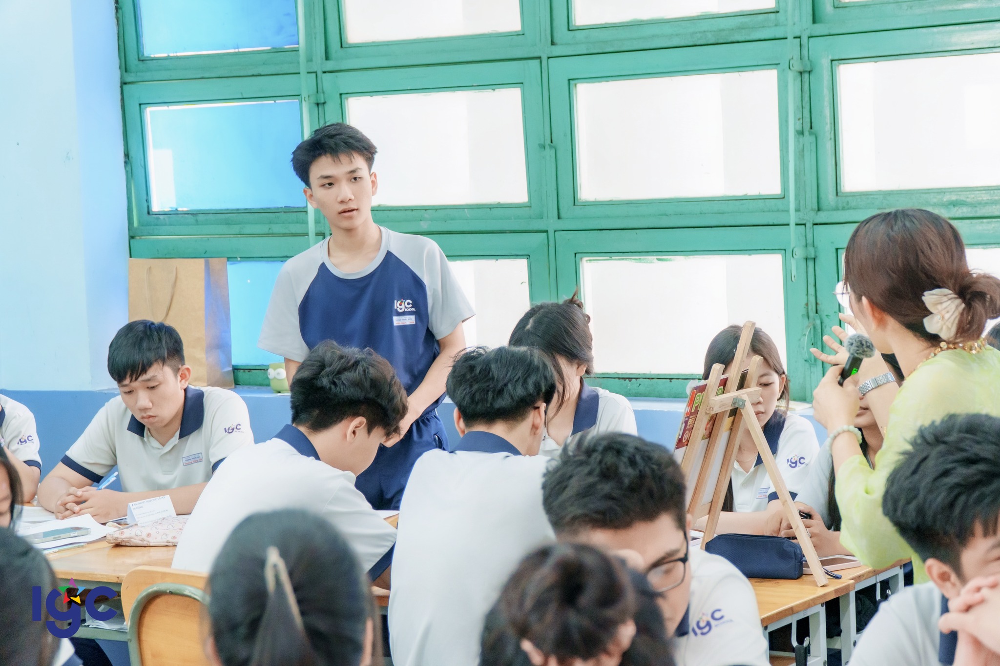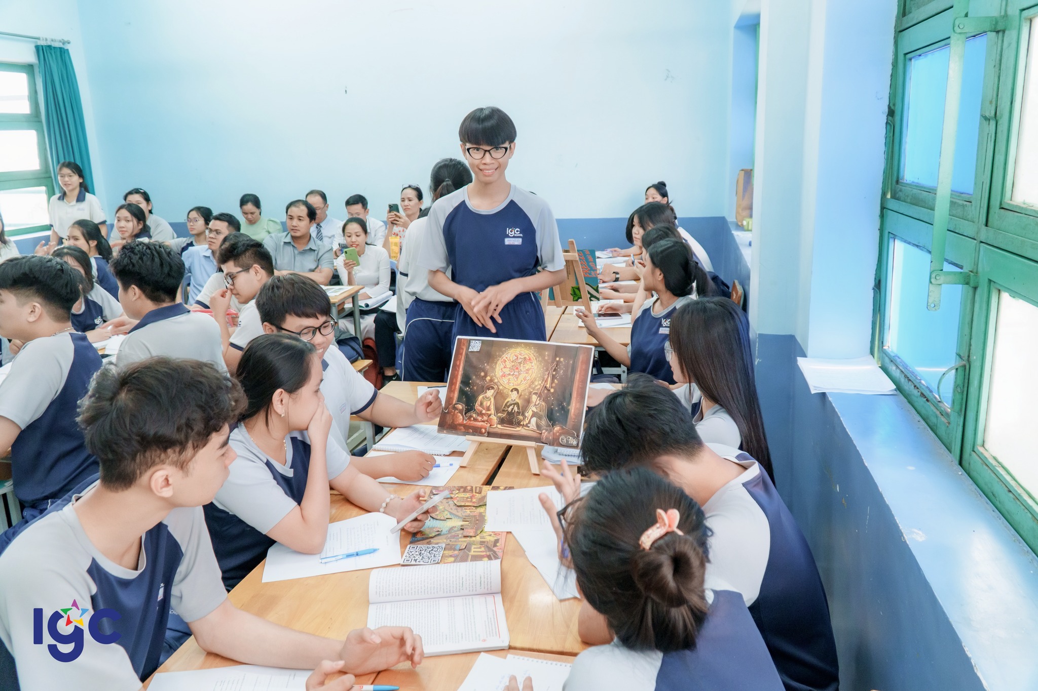 Tiết học chú trọng vào việc phát triển năng lực tự chủ và tự học. Thông qua các trò chơi tương tác và hoạt động thuyết trình, đánh giá sản phẩm, học sinh Trịnh Hoài Đức đã chứng minh được tư duy phản biện sắc sảo và phong thái tự tin.